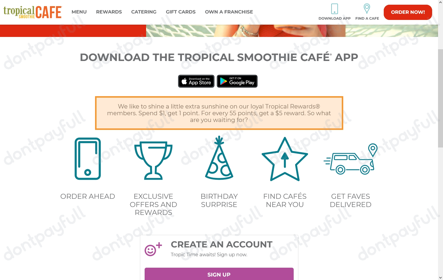 Free Smoothie on your Birthday --- Sale Wraps Sandwiches and Salads - Catering from Tropical Smoothie --- 5 Off Earn 5 for Every 55 Spent with the Tropical Rewards App --- Sale Baja. Must order ahead using app for in-cafe or curbside pick-up or for delivery or scan app in-cafe at time of purchase. Tropical Smoothie Cafe Free Smoothie After Purchase 5 Every 55 Points With App Sign Up Tap offer to copy the voucher code.